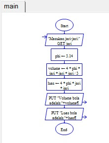 Buatlah algoritma untuk mencari isi bola bila diketahui jari-jari bola.